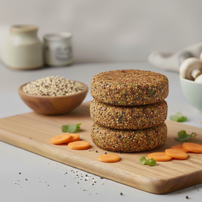 Delicia-te com nossos burguers de feijão vermelho com beterraba e cogumelos. Feitos com ingredientes naturais e com um sabor incrível, eles são uma opção saudável e sustentável para as tuas refeições.